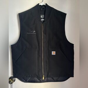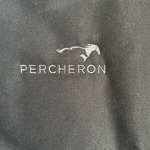 Durable black vest with front pockets. Features zip closure and Percheron logo.