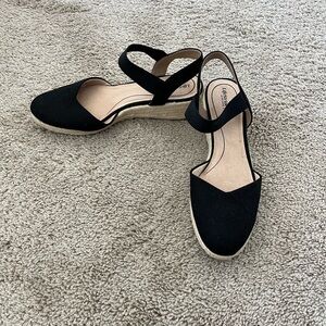 Stylish black canvas wedges with espadrille sole. Perfect for casual outings. Never worn.