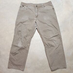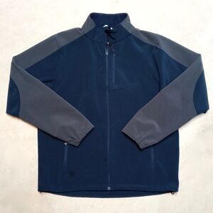 The jacket is pre-owned, has cosmetic dirt discoloration on the front, some red spots on the front (photos 4&5) and a small holes near the right pocket (photo 6), but it's still in good, wearable condition.