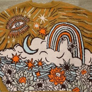 Spiritual Gangster sweater. Golden Hour design in Delaney cardigan style. Hazel color. Deep v-neckline cardigan and button front closure. Relaxed fit with dropped shoulders. Size medium.