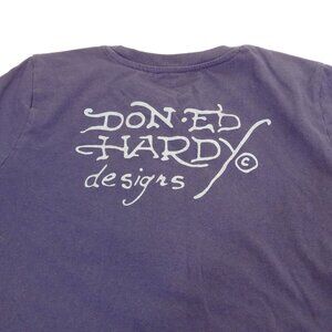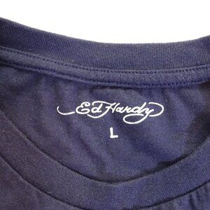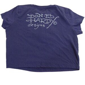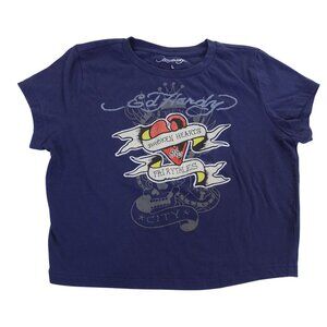 Ed Hardy Graphic Cropped T-shirt Blue Women Size L Y2K Indie Tattoo Art Grunge