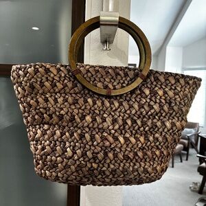 Brown weave with circular wooden handles