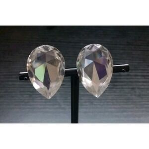 Vintage Austrian Clear Crystal Teardrop Clip Earrings 1.75" Heavy Faceted Mid...