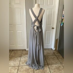 DAVID'S BRIDAL High Neck Sequined Lace and Chiffon Dress STYLE# F19452