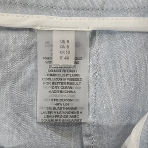 These trousers feature a high-rise waist for a flattering silhouette and a wide leg cut that creates an elegant, elongated look. Crafted from a breathable linen blend fabric, they’re perfect for warm-weather dressing while still looking refined and structured.