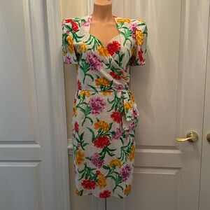 DAVID WARREN Embossed Cotton Jacquard White Floral Dress Sweetheart Neck Size 12