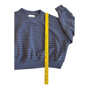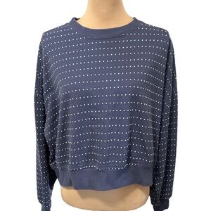 Aerie Take It Easy Crew Cropped Sweatshirt Sweater Embroidered Dots Blue Medium.