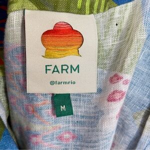 Farm Rio 100% Linen Blue Macaw Colorful Patterned Mini Dress M Resortwear