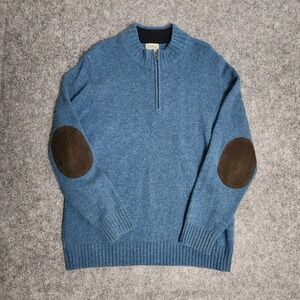 LL Bean Sweater Men L Reg Shetland Wool Blue Elbow Patches Quarter Zip 285327