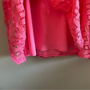 Vintage Le Château Strapless Watermelon Pink Trellis Lace Dress – Size Med GUC