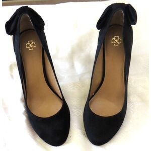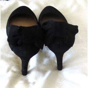 Ann Taylor Chic Black Suede Pumps with Bow Accent Back Heel 9.5 EUC