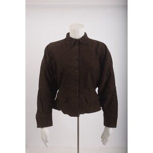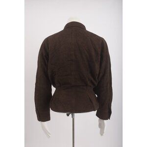 Zara Limited Edition Dark Brown 100% Suede Jacket with a collar and long sleeves. Cuffs, front pockets with flaps, pleated waistband, and lining. Fastens with buttons
