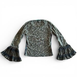 Designed with dramatic flared bell sleeves in a textured mesh giving it a romantic fairy feel