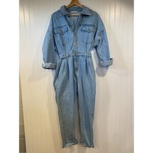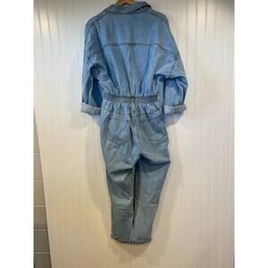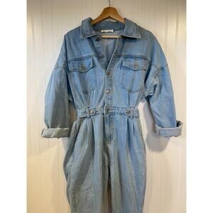 12th Tribe Denim Jumpsuit Women's M/L Light Wash Button Up Collared Long Sleeve