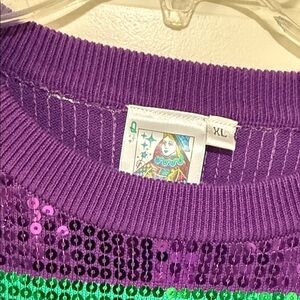 QUEEN OF SPARKLES Sequin Striped Sweater - Purple, Green, Yellow Mardi Gras