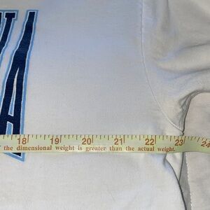 White t-shirt featuring North Carolina Tar Heels graphic. Perfect for sports fans.