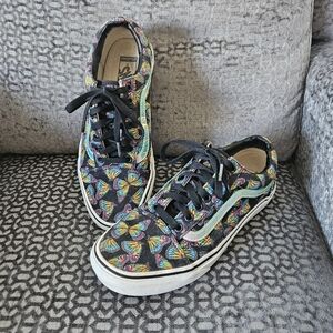 These vibrant Vans Sneakers feature a playful butterfly design, & shiny side detail. Perfect for adding a splash of color to any outfit. Comfortable and stylish, they are ideal for everyday wear.