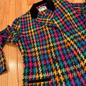Elevate your style with this eye-catching multicolor houndstooth blazer. Perfect for making a bold statement. NOTE! missing 2 buttons