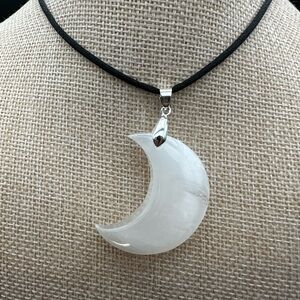 Selenite Crescent Moon Pendant on Black Satin Rope