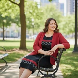 Maya Brooke Black and Red Maxi Dress with Red Blazer