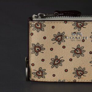 Coach Mini ID Wallet w/ Keychain | Mendi Floral Print {Paisley} Tan, Brown NWOT