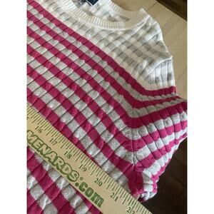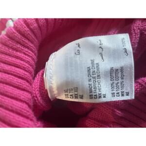 The Karen Scott 100% cotton crew white pink gray cable knit sweater in size XL is a versatile and stylish addition to any woman's wardrobe. Featuring a classic cable knit pattern with a preppy casual design, this pullover sweater is perfect for all seasons. The white and pink stripes add a fun and feminine touch, making it ideal for casual occasions. Made from high-quality cotton, this sweater is machine washable for easy care. Perfect for winter, summer, fall, or spring, this Karen Scott sweater combines comfort and style effortlessly.