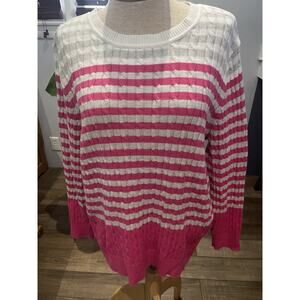 KAREN SCOTT 100% cotton crew White Pink Gray cable knit sweater XL Valentines