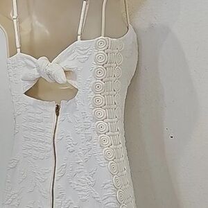 Lilly Pulitzer White Lace Brett Strapless Sweetheart Neckline Dress Gold zipper closure with tie back fully lined. adjustable straps