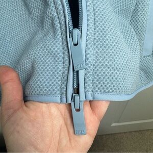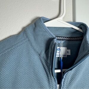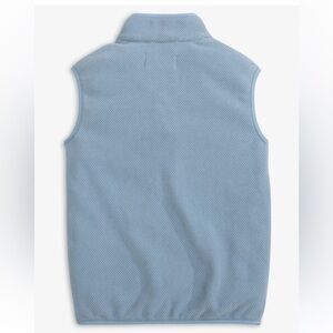 NWT Southern Tide boy’s Youth Hucksley Vest in Spring Mountain Blue, size XL. Vest features Outline Skipjack embroidery on left chest, a mock collar with 4-way stretch binding, 4-way stretch binding at armholes and bottom hem, and welt pockets with zipper closure.