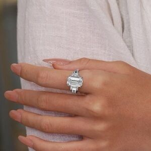 5CT S925 Sterling Silver 8×12mm Emerald Cut High Carbon Diamond Ring Size 6