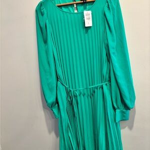 Torrid Vibrant Green Long Sleeve Dress Easter spring pleated midi size 12