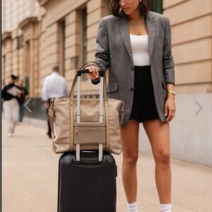 The Louenhide Nora Nylon Tote Bag is the perfect combination of practicality and style. With its spacious interior, this tote bag is perfect for carrying your daily essentials. It features one zip pocket and two slip pockets in the main compartment, as well as a backside zip pocket and feet on the base to keep your belongings safe and secure. The backside suitcase sleeve allows you to easily attach the tote to your luggage for added convenience. The adjustable and detachable sateen guitar strap and PU strap provide versatility and comfort, allowing you to wear the bag over the shoulder or crossbody. The partial secure zip and light gold hardware add a touch of elegance to this stylish and functional bag. Whether you're running errands or heading to work, the Louenhide Nora Nylon Tote Bag is the perfect accessory to complement any outfit.
