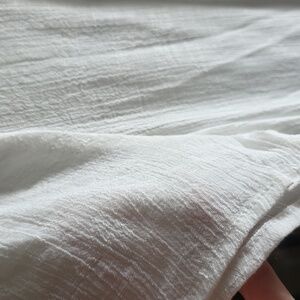 Textured white flowy fabric with HYFVE label. Soft and elegant. Perfect for cover up or shirt dress. Thin and cool. 17 in ptp new with tags small