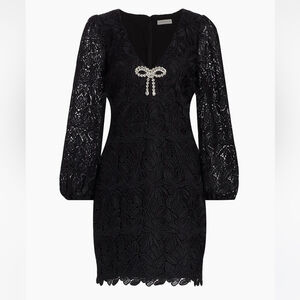NWT ML Monique Lhuillier Sydney Lace Crystal Bow Minidress