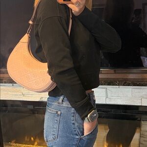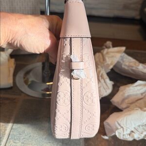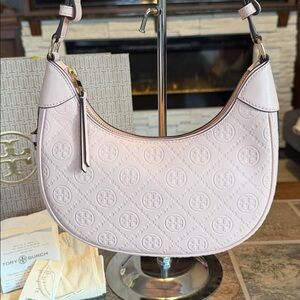 Tory Burch T Monogram Leather Crescent Bag - Blush