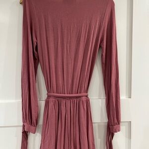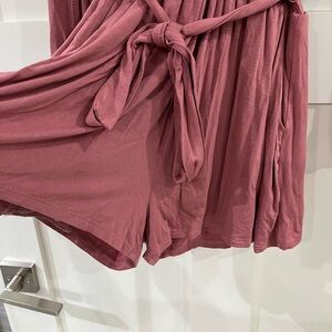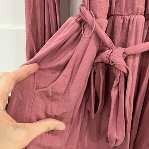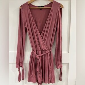 Lulu's Dusty Rose Long Sleeve Short Romper with Arm Slits and Pockets Size S