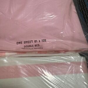 Vintage Stevens Fine Combed Percale Pink Stripe Double Bed Sheet Set New