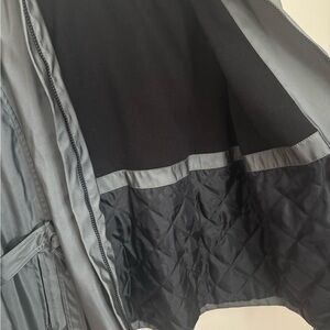 Outbrook women’s vintage Y2K fleece-lined jacket in size 1X (16W/18W). Features a gray, water-resistant outer shell with a soft fleece interior, removable hood, hidden front zip closure, pockets, and adjustable waist tie belt. In good condition other than some dark spots on the exterior shell in select areas, otherwise great condition! The spots do not affect wear and aren’t noticeable. Fast shipping!