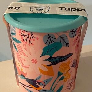 Stylish container for bath essentials. Features vibrant floral design. Perfect for organizing.