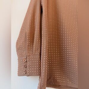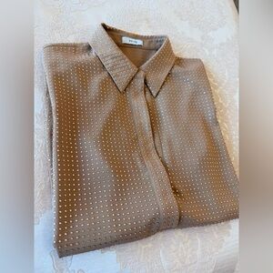 Elegant brown blouse featuring a subtle crystals design. Long sleeves with a classic collar. Perfect for any occasion.The blouse was never worn, no tag but it’s completely new! Size is Medium. Pit to Pit is 19in Length is 25in
