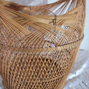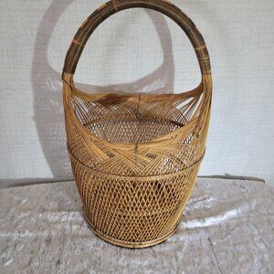 Wicker Basket 8x16x8 Dark Handle Storage Decor Organization Natural Weave Design