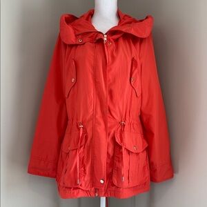 Steve Madden | Solid Anorak Rain Jacket | Coral & Gold Hardware | Large