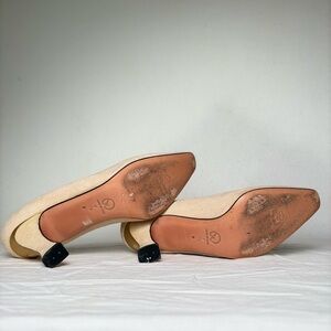 ST. JOHN Genuine Suede Leather Cream Heels Pumps Gold Trim 7.5 B