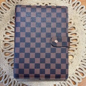 Brand new never used Stylish checkered planner binder in brown and black. Features a secure button closure.