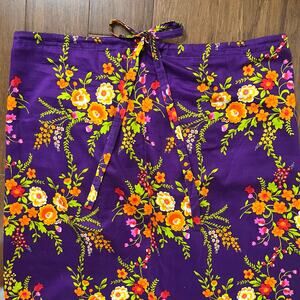 Vintage 70s Floral Peasant Skirt Maxi Purple Orange Pockets Adjustable Tie Waist Boho Psychedelic // Plus Size 2X or 3X