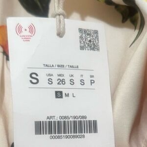 Adorable ZARA citrus print mini dress in a bright orange + green botanical pattern.