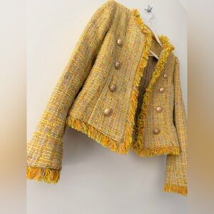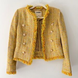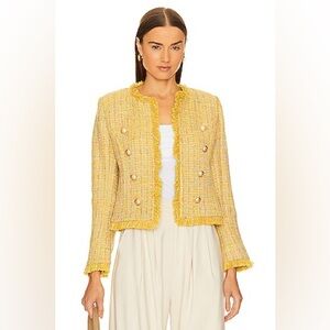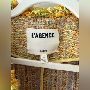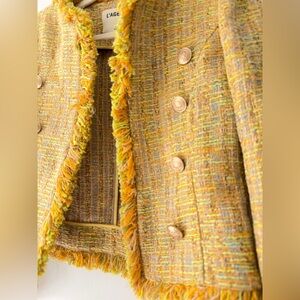 L’AGENCE Tinlee Blazer in Yellow Multi Tweed open front jacket Chanel-like, sz 0