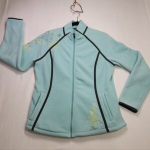 🩵Eddie Bauer Teal/Blue Large Fleece Jacket with Floral Embroidery