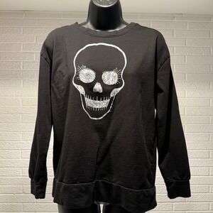 Skull Rhinestone Embellished Halloween Sweatshirt - Women's Small