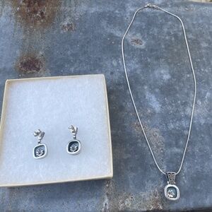 This is a gorgeous Larimar sterling silver pendant necklace and earring set. The necklace is 18 inches and the pendant is .5 by .5 inch. The earrings are 1 inch by .5 inch. This set was originally purchased from Inara Jewelry.
